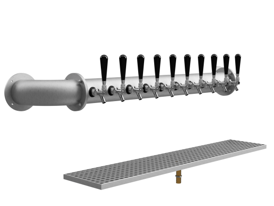 The Bisque Series redefines standard dispensing with its unique cantilevered design and wider faucet spacing. Similar to the Fais Do Do, the Bisque features a single offset pedestal (Left or Right), but offers 4-inch center-to-center faucet spacing (vs. the standard 3-inch). This extra width is designed to accommodate oversized tap handles and provide a bolder, more spacious presentation. Constructed from heavy-duty 304 Stainless Steel (or available in Copper), the Bisque is built for venues that want to make a statement. Its robust 6-inch diameter column ensures stability while the "L-shape" configuration keeps the bar top open and uncluttered.