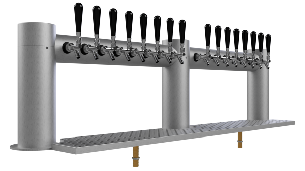 The Caimon Tower series defines modern dispensing with its clean, cylindrical aesthetic. Unlike the industrial pipe look of the Pirogue, the Caimon features sleek, tubular stainless steel columns and headers, offering a refined and polished appearance suitable for any bar environment. Constructed from premium 304 Stainless Steel, the Caimon family scales to meet any dispensing requirement. The series starts with the single-pedestal Caimon T, expands to the double-pedestal Caimon H, and culminates in the massive, triple-pedestal Caimon M for high-volume beer walls.